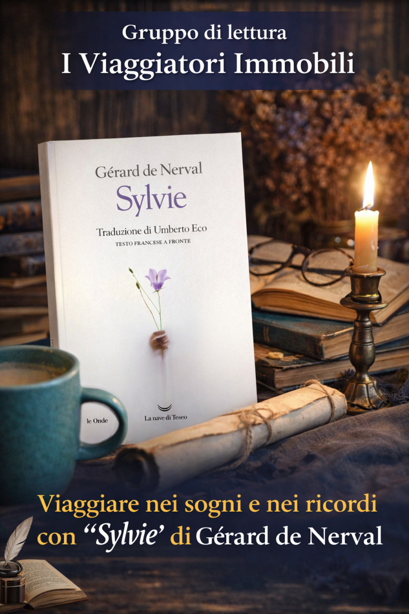 Prosegue il percorso del gruppo di lettura “I Viaggiatori Immobili” con un libro che fa della memoria, del desiderio e della ricerca un viaggio senza confini temporali. Dopo l’incontro con Il giorno dell’ape di Paul Murray, i nostri lettori si addentrano ora in una pagina di letteratura classica e poetica: Sylvie di Gérard de Nerval, autore del Romanticismo francese, la cui scrittura anticipa temi e sensibilità che saranno poi propri del Simbolismo.
